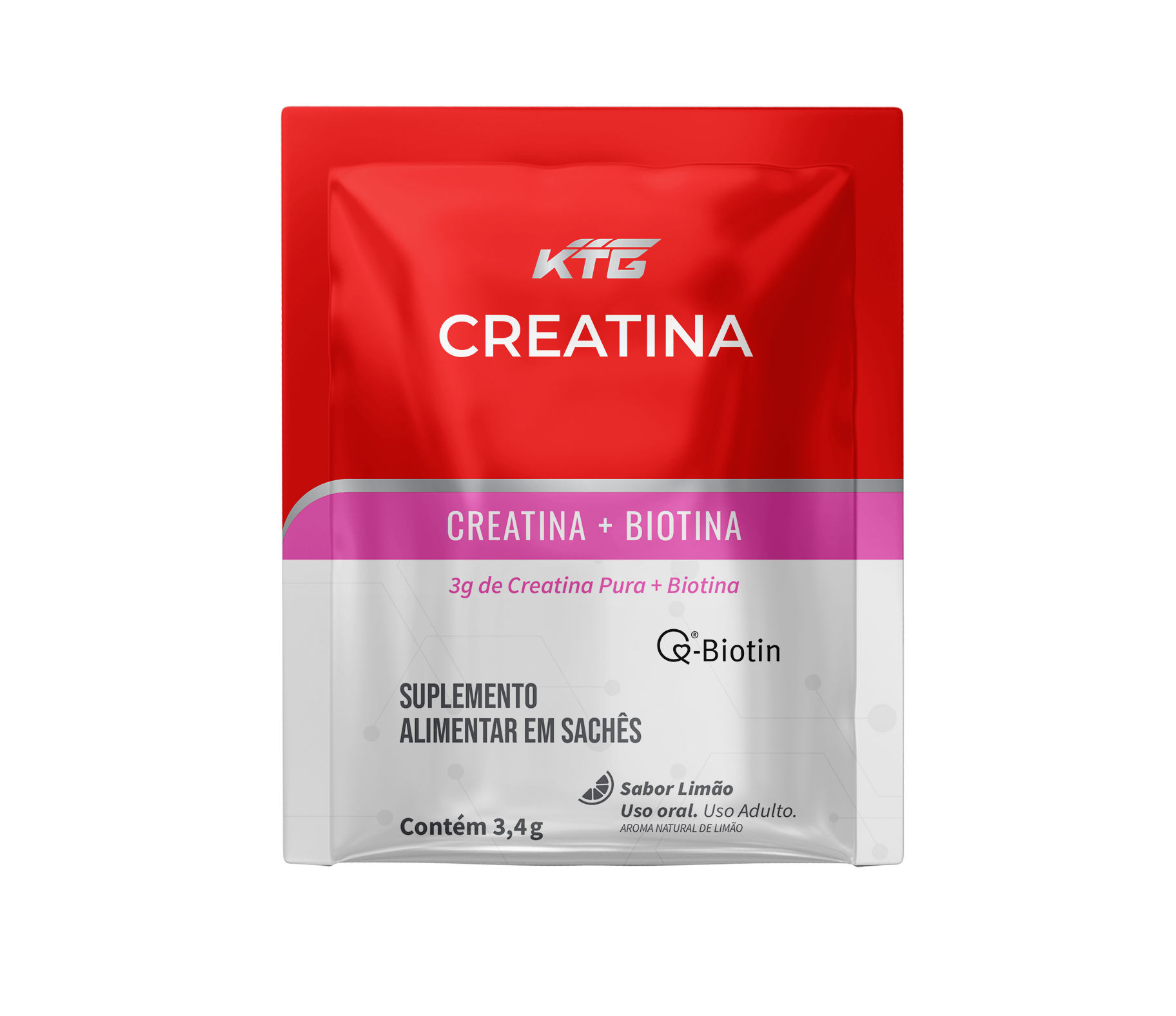 A Creatina 3g + Biotina é um suplemento alimentar em sachês que combina creatina monohidratada e biotina (vitamina B7) em sua formulação. Possui ácido cítrico como acidulante, aroma natural de limão, edulcorante sucralose e dióxido de silício como antiumectante.