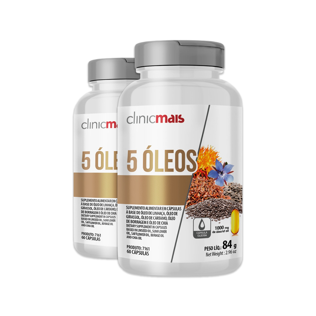 Kit 2 5 Óleos Linhaça Girassol Cártamo Borragem e Chia ClinicMais 60 Cápsulas