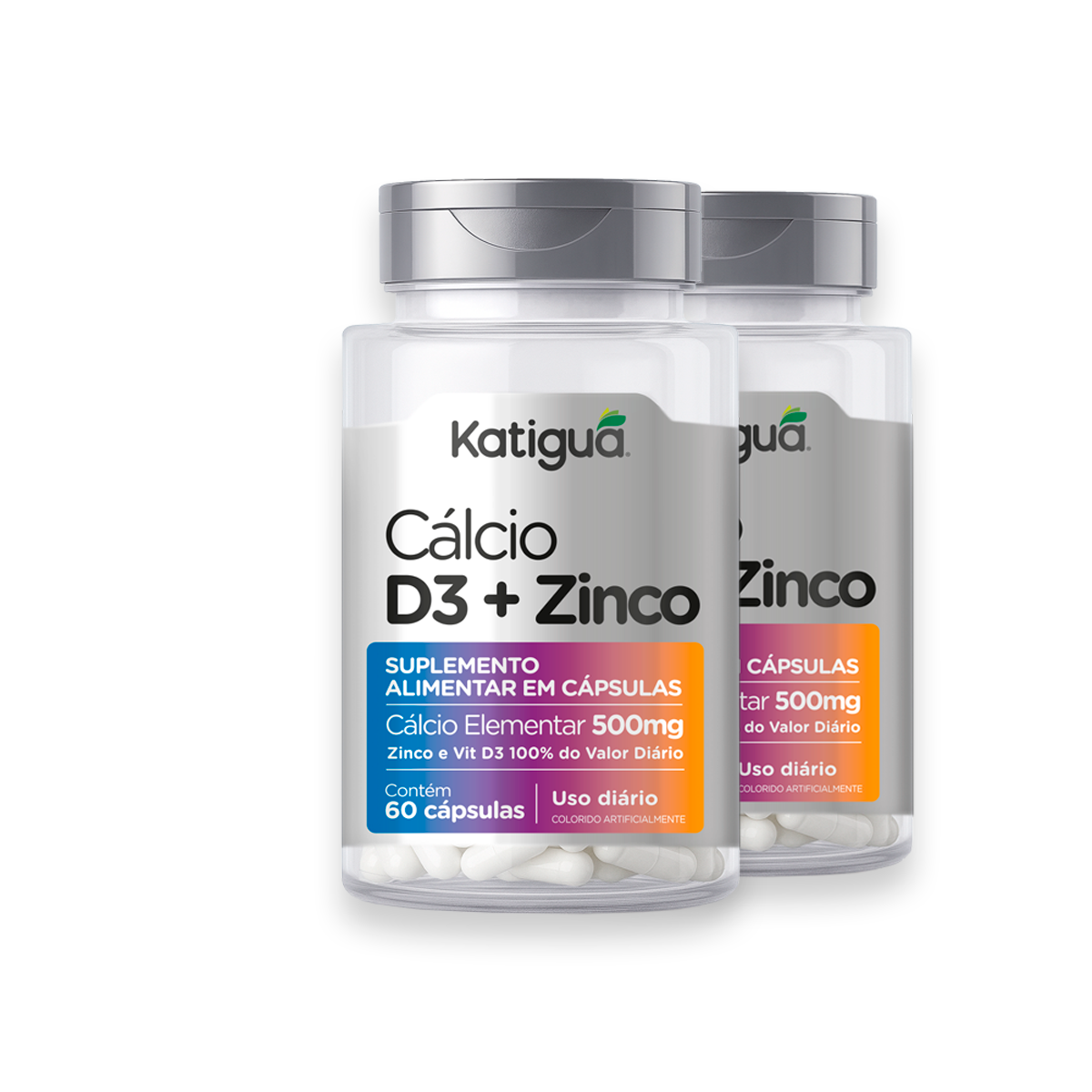 Kit 2 Cálcio+D3+Zinco Katiguá 500mg 60 Cápsulas
