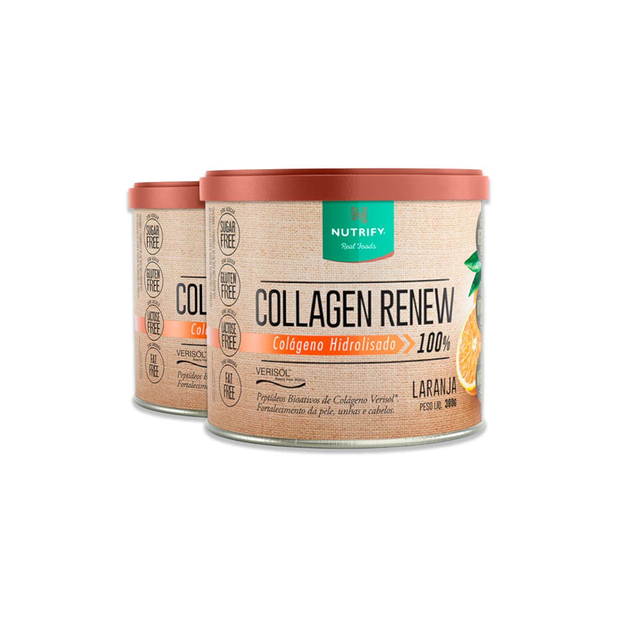 Kit 2 Collagen Renew Laranja Colágeno Nutrify 300g + Porta Cápsulas