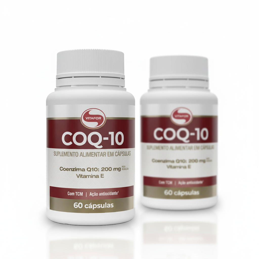 A Coenzima Q10 Vitafor é um suplemento alimentar em cápsulas formulado com coenzima Q10 e vitamina E. Apresenta composição combinada em formato prático para consumo diário, conforme orientação de uso.