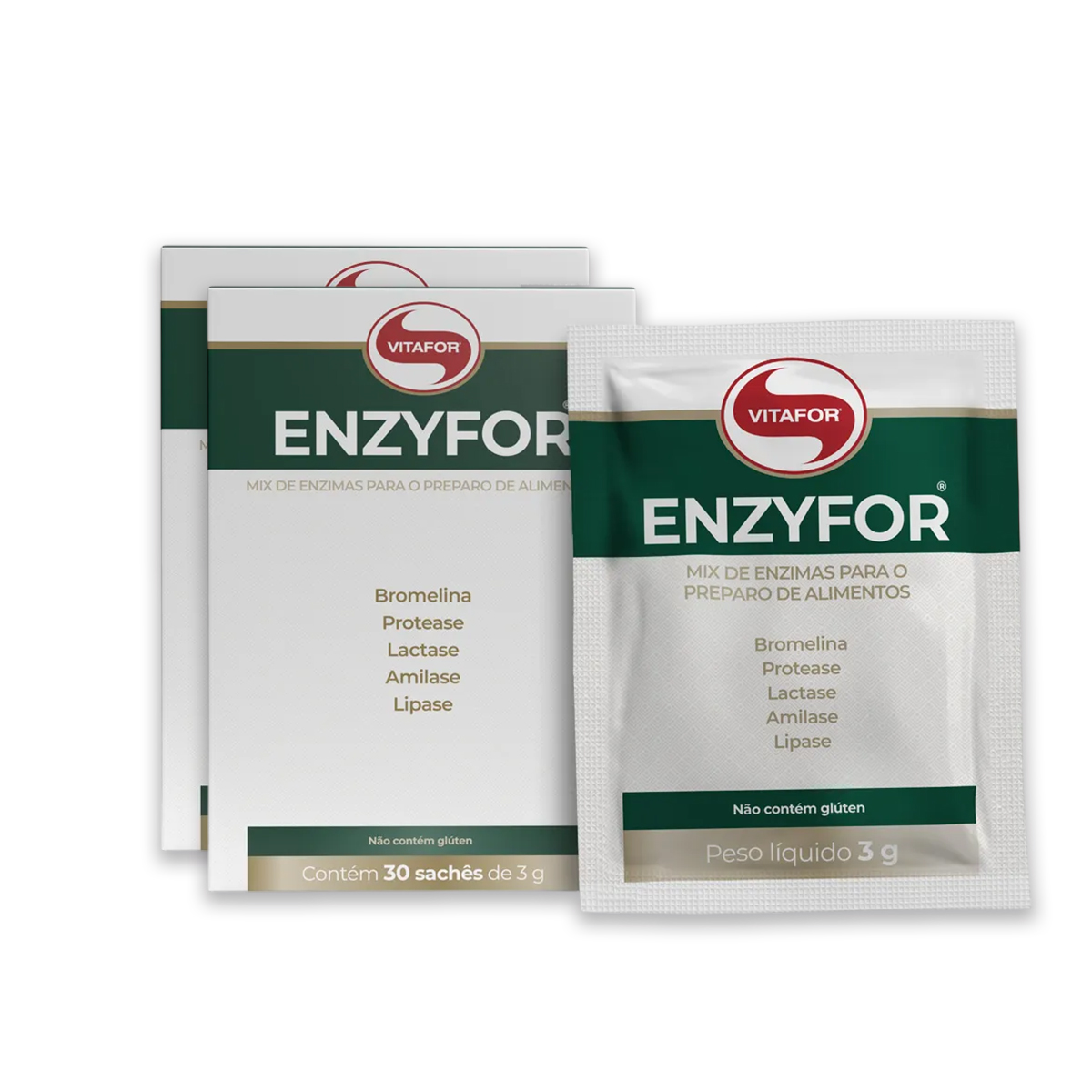 Enzyfor da Vitafor é um suplemento alimentar composto por um mix completo de enzimas digestivas: protease, lactase, lipase, bromelina e alfa-amilase. Indicado para o preparo de alimentos e bebidas, especialmente os ricos em proteínas e derivados lácteos, Enzyfor auxilia na digestão e pode contribuir para um melhor aproveitamento dos nutrientes pelo organismo.