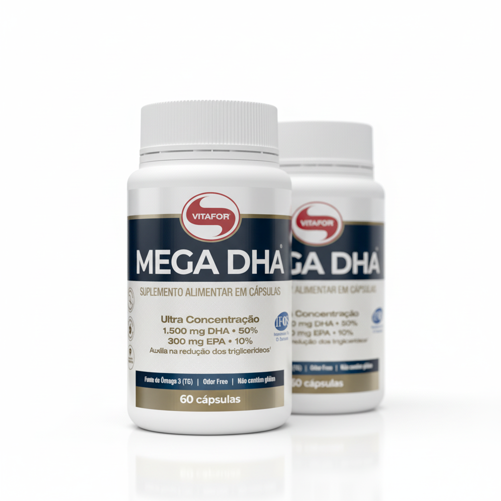 O Mega DHA Vitafor é um suplemento alimentar em cápsulas formulado com óleo de peixe. Apresenta formato prático para consumo diário, conforme orientação de uso, e cápsulas softgel que facilitam a ingestão.
