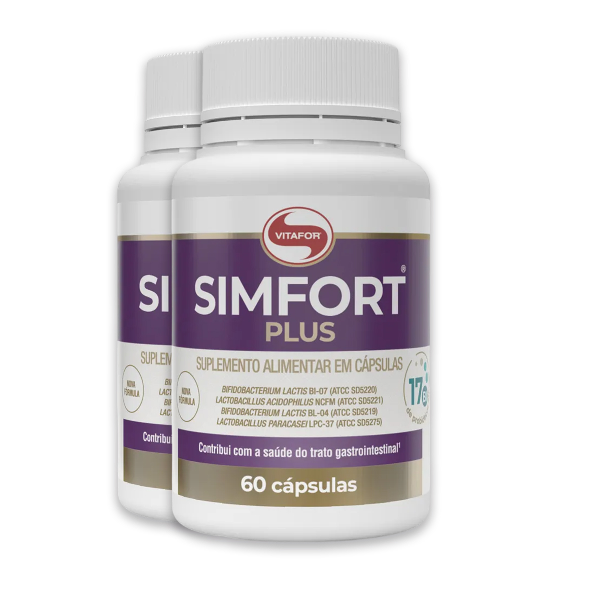 Simfort Plus da Vitafor é um suplemento alimentar probiótico composto por quatro cepas cuidadosamente selecionadas, que atuam de forma sinérgica para promover o equilíbrio da microbiota intestinal. Cada dose fornece 17 bilhões de micro-organismos vivos, contribuindo para a saúde intestinal, digestiva e imunológica.