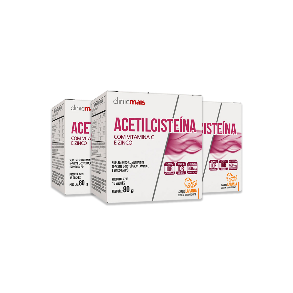 Kit 3 Acetilcisteína ClinicMais Laranja 16 Sachês