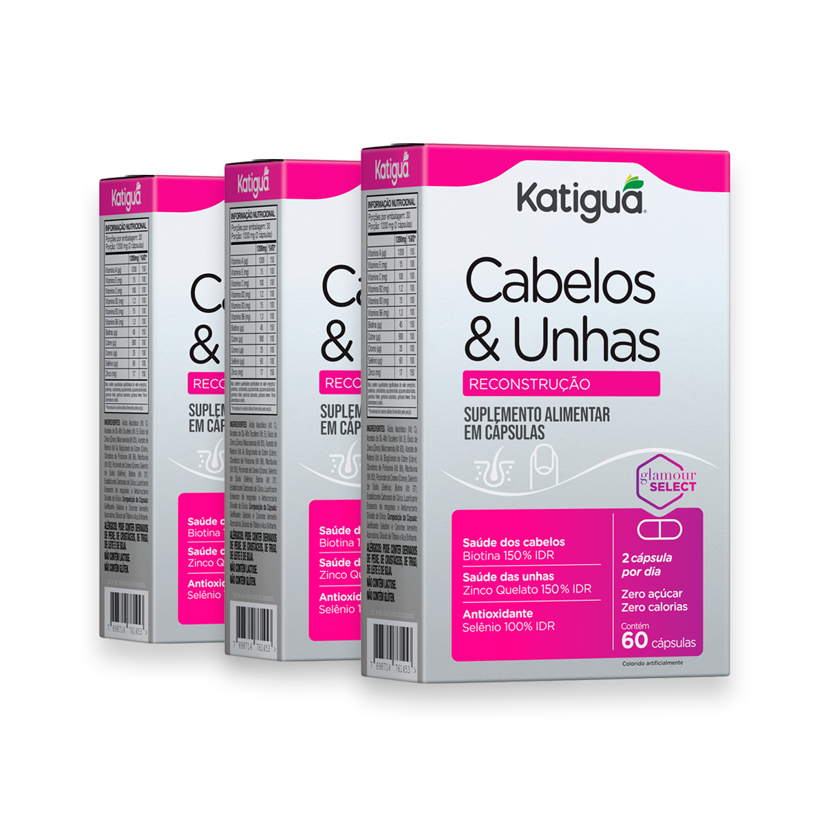 Kit 3 Cabelos e Unhas Reconstrução Katiguá 60 Cápsulas