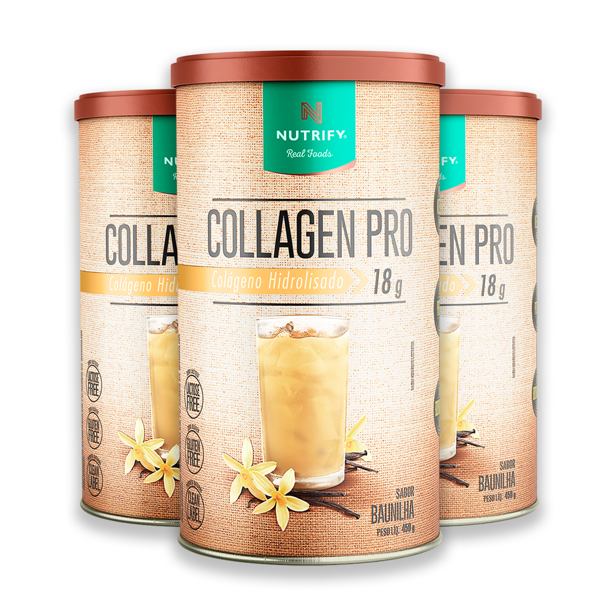 Kit 3 Collagen Colágeno Hidrolisado Nutrify Baunilha 450g + Porta Cápsulas