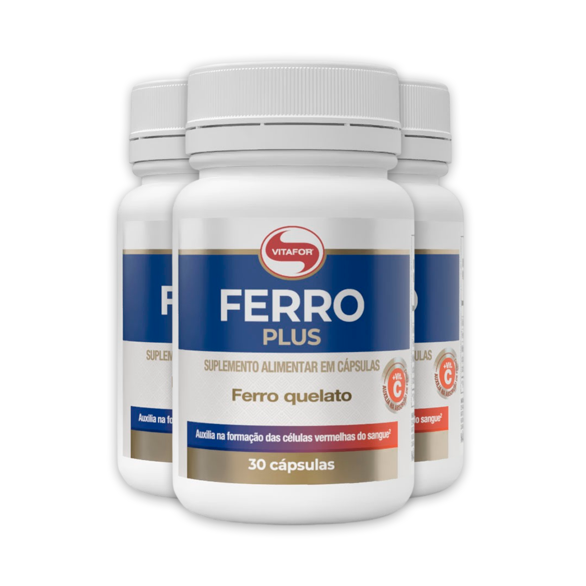 Kit 3 Ferro Quelato Plus Vitafor 30 Cápsulas