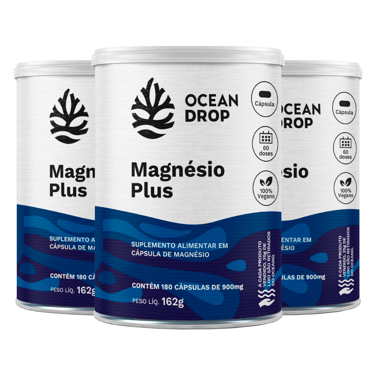 Kit 3 Magnésio Plus Ocean Drop - 180 cápsulas de 900mg cada + porta capsulas