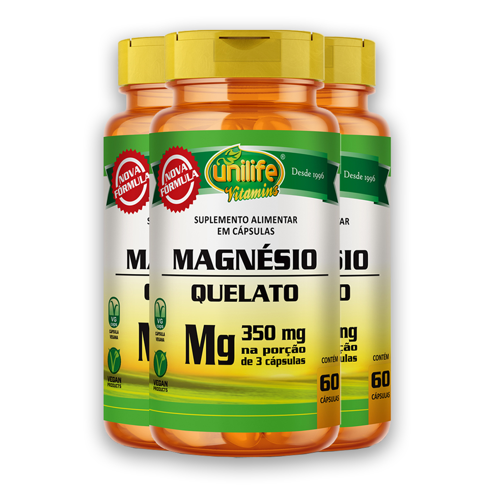 Kit 3 Magnésio Quelato Unilife 60 Cápsulas + Porta Cápsulas