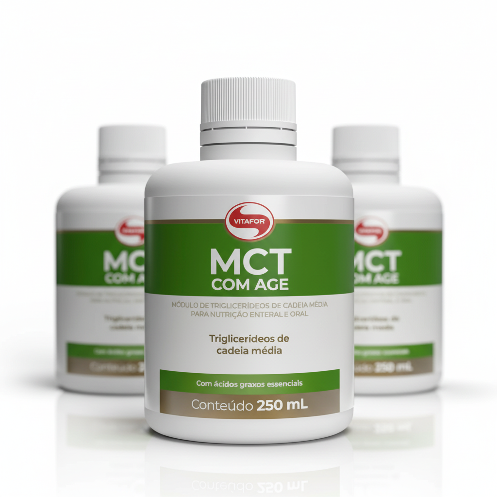 O MCT AGE Vitafor é um suplemento alimentar líquido composto por óleos vegetais selecionados. Apresenta fácil incorporação em diferentes preparações alimentares, podendo ser utilizado conforme orientação de uso.