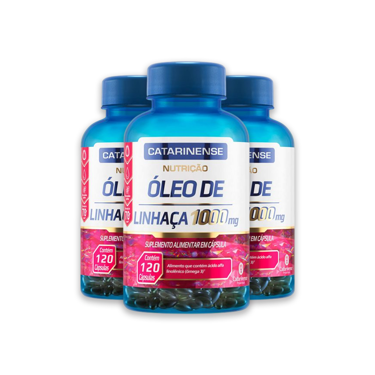 Kit 3 Óleo de Linhaça Catarinense 120 Cápsulas + Porta Cápsulas