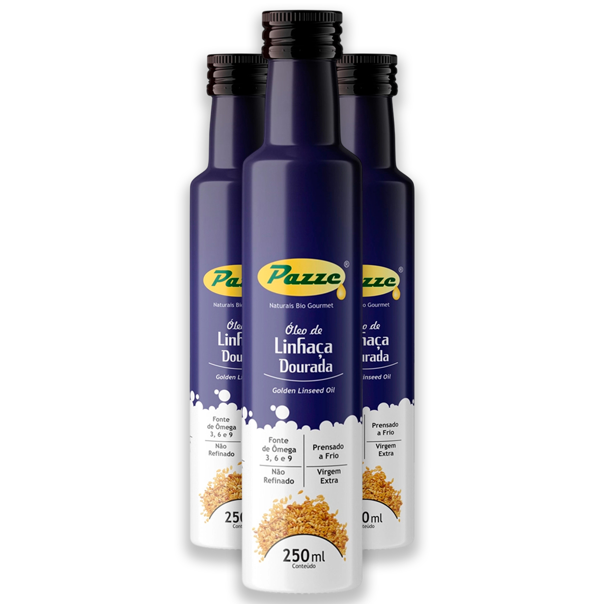 Kit 3 Óleo de Linhaça Dourada Pazze 250ml + Porta Cápsulas