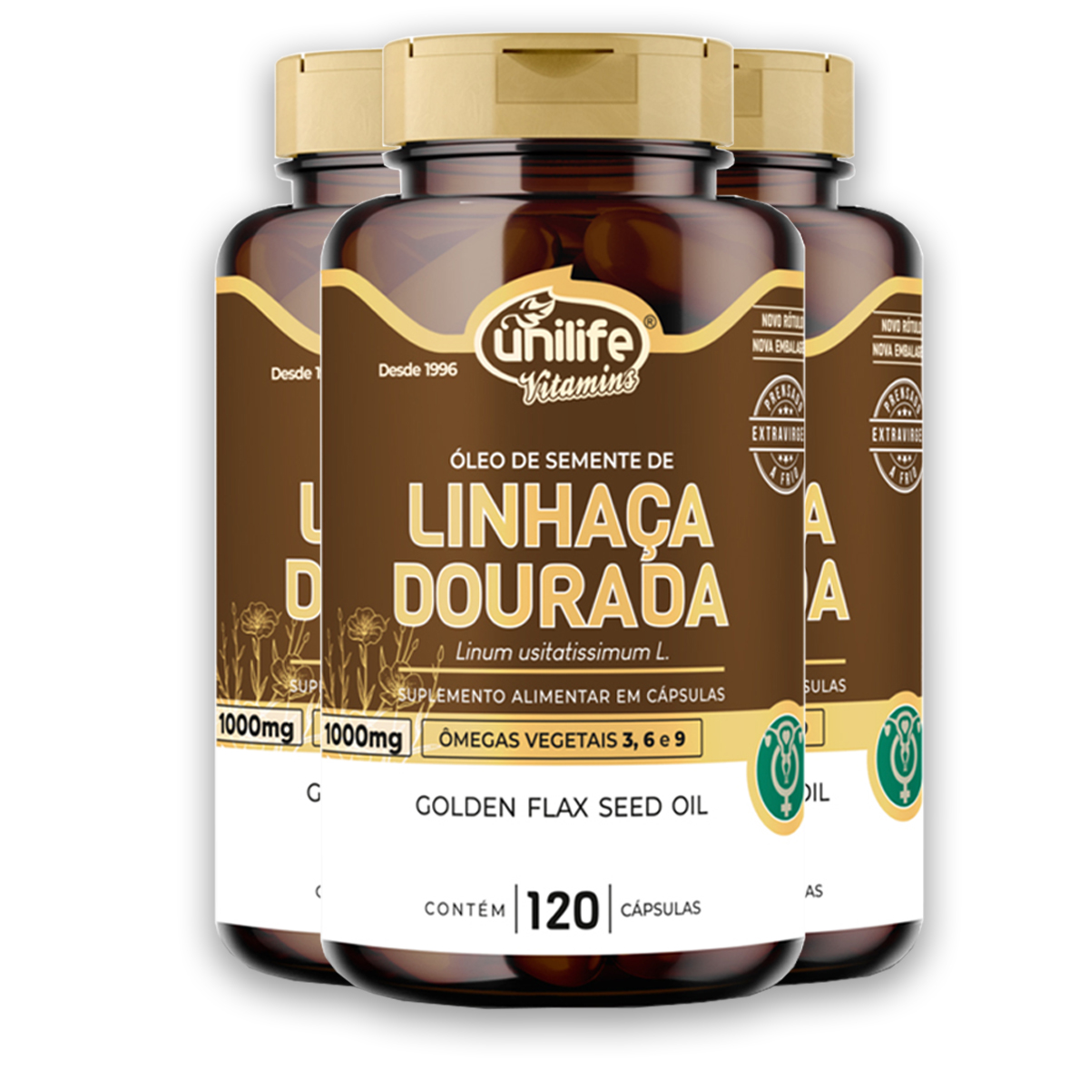 Kit 3 Óleo de Semente de Linhaça Dourada Unilife 120 Cápsulas + Porta Cápsulas