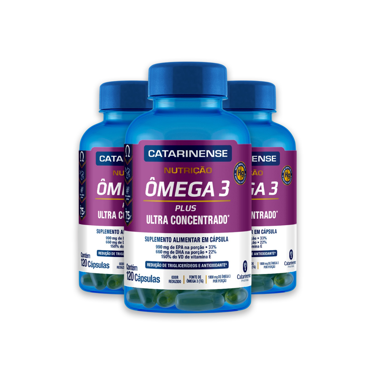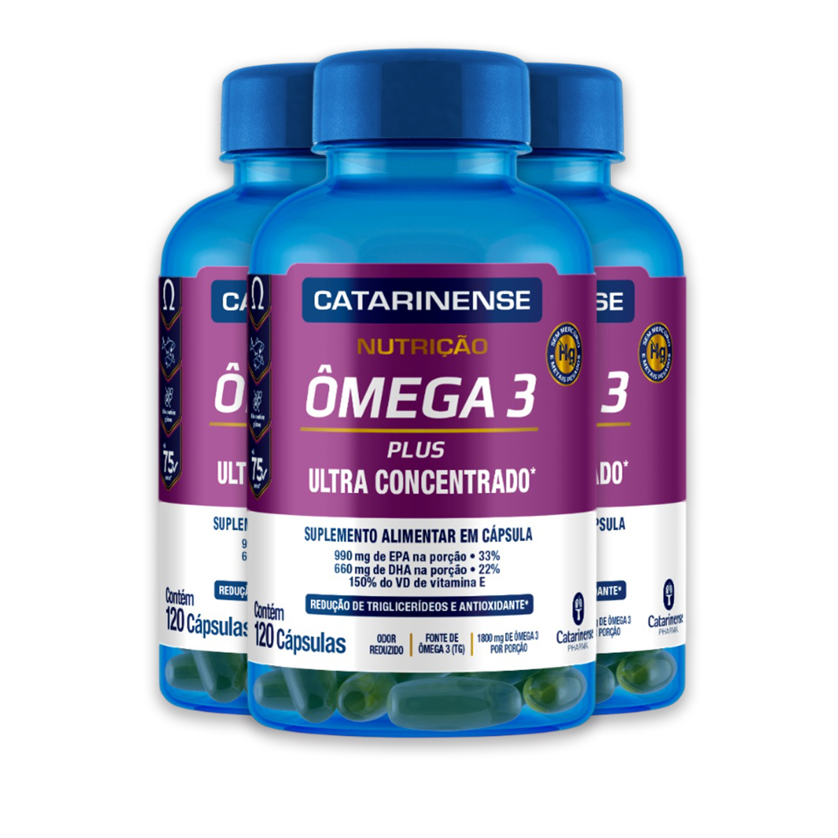 Kit 3 Ômega 3 Plus Ultra Concentrado Catarinense 120 Cápsulas + Porta Cápsulas