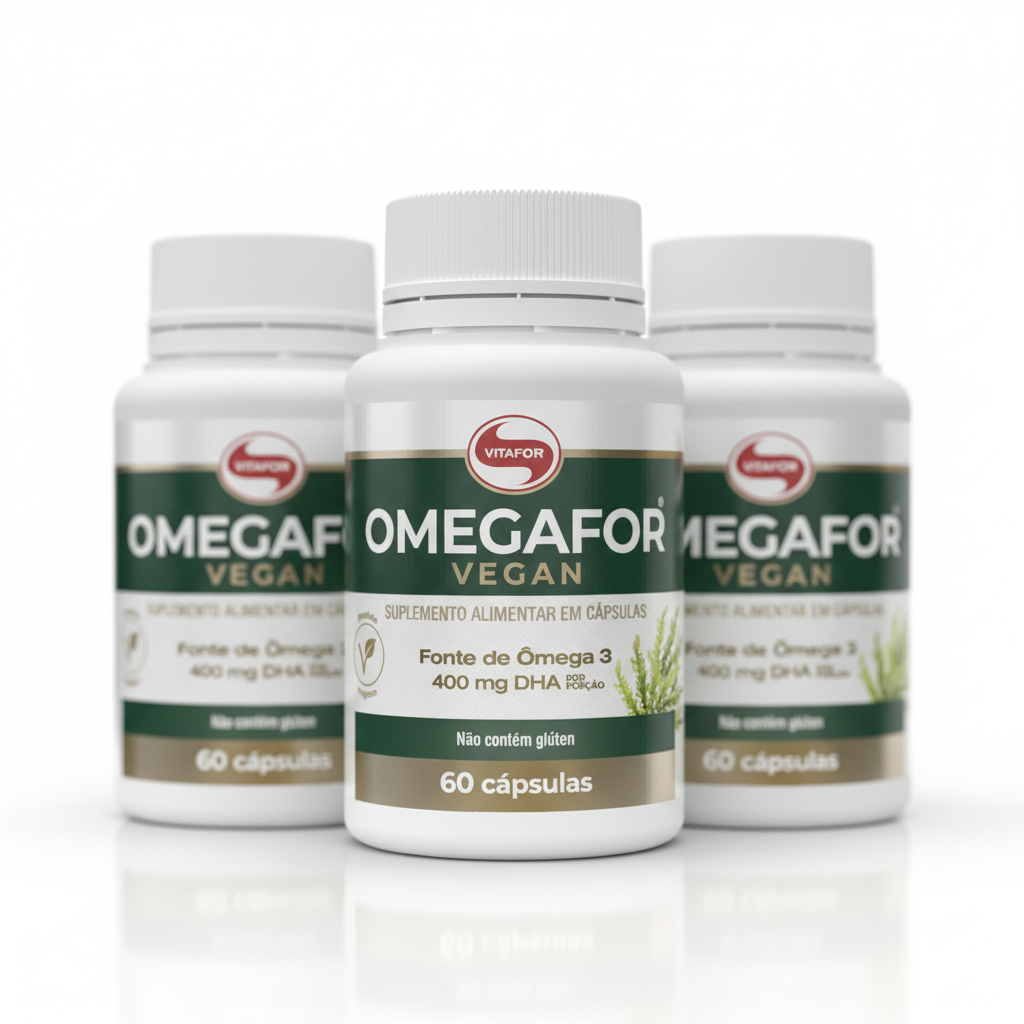 O Omegafor Vegan Vitafor é um suplemento alimentar em cápsulas desenvolvido a partir de óleo de microalgas. Apresenta formulação de origem vegetal e cápsulas vegetais, sendo uma opção prática para consumo conforme orientação de uso.