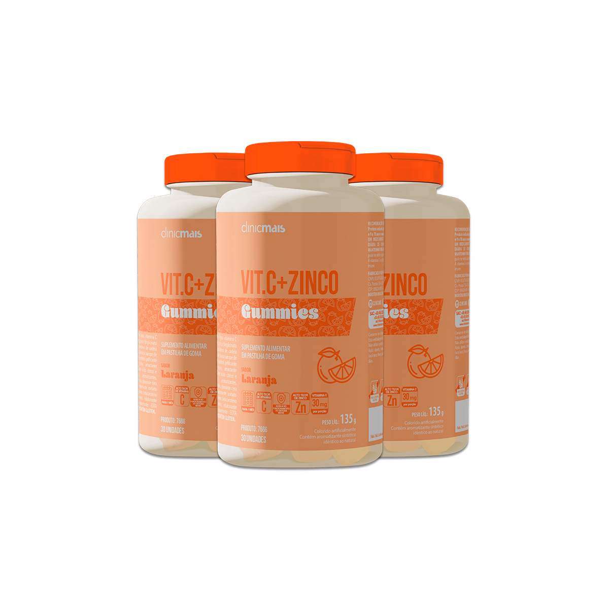 Kit 3 Vit.C + Zinco Gummies Clinicmais 30 Gomas Laranja