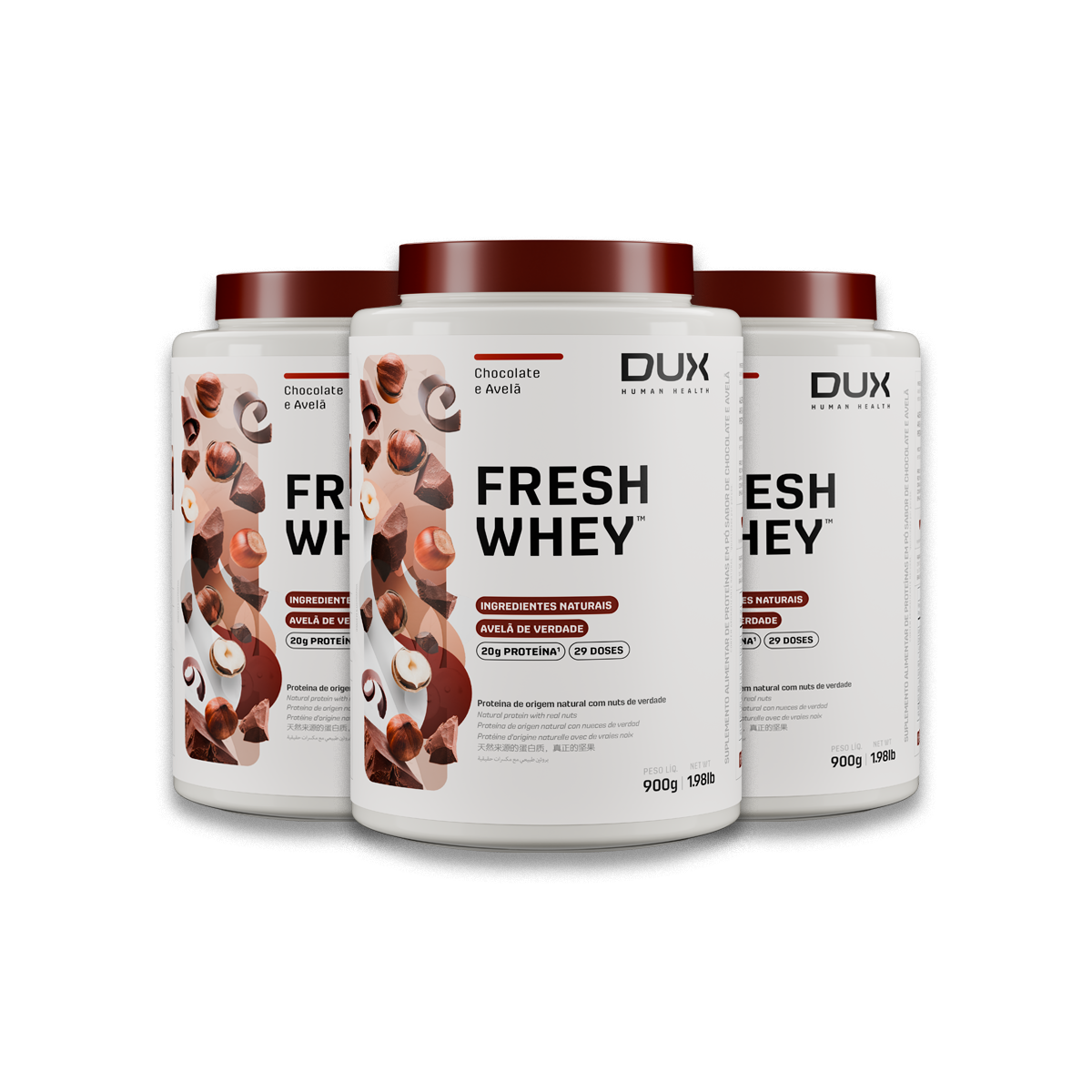 Kit 3 Whey Protein Fresh Dux Chocolate Belga e Avelã 900g