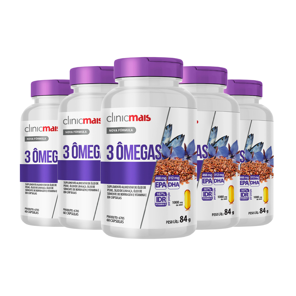 O 3 Ômegas ClinicMais combina óleo de peixe, óleo de linhaça, óleo de borragem e vitamina E, reunindo fontes naturais de ácidos graxos essenciais em um único suplemento. Essa composição traz variedade de nutrientes e praticidade para quem deseja complementar a rotina alimentar com gorduras de origem vegetal e animal selecionadas.