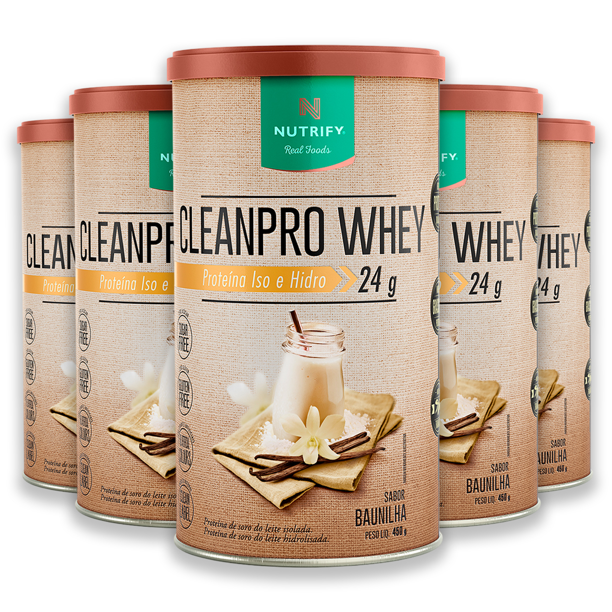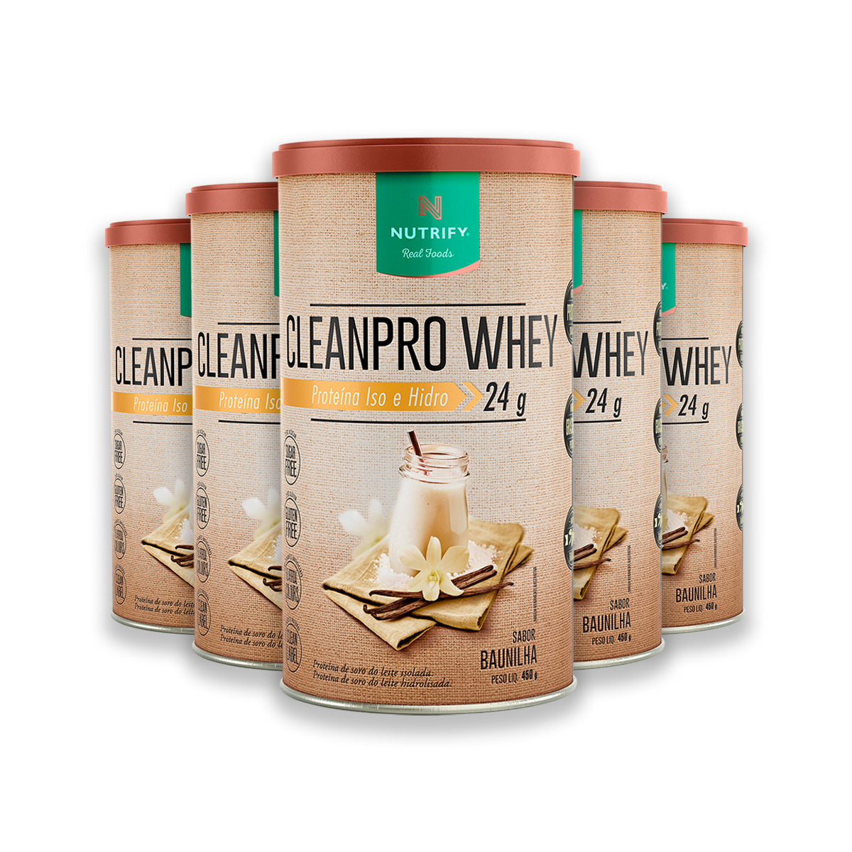 Kit 5 CleanPro Whey Baunilha Nutrify 450g