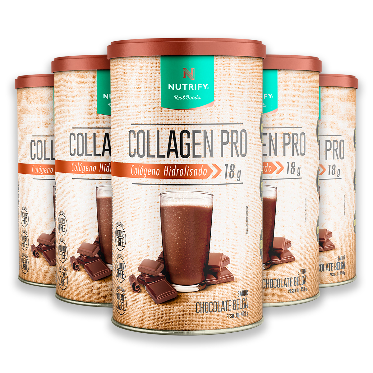 Kit 5 Collagen Colágeno Hidrolisado Nutrify Chocolate Belga 450g + Porta Cápsulas