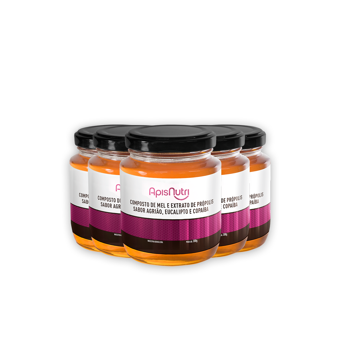 Kit 5 Composto de Mel ApisNutri Agrião, Eucalipto e Copaíba 300g