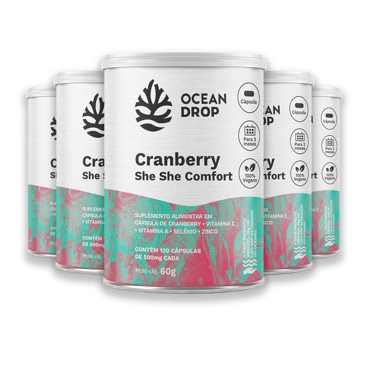 Kit 5 Cranberry Ocean Drop 120 Cápsulas + Porta Cápsulas