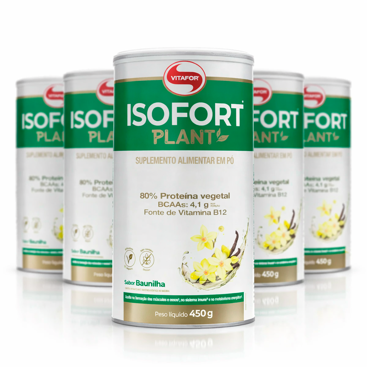 Kit 5 Isofort Plant Vitafor 450g Baunilha