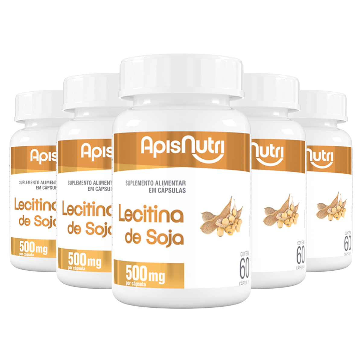 Kit 5 Lecitina de soja 500mg Apisnutri 60 Cápsulas