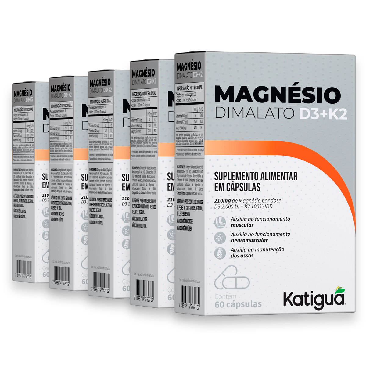 Kit 5 Magnésio Dimalato+D3+K2 Katiguá 60 Cápsulas