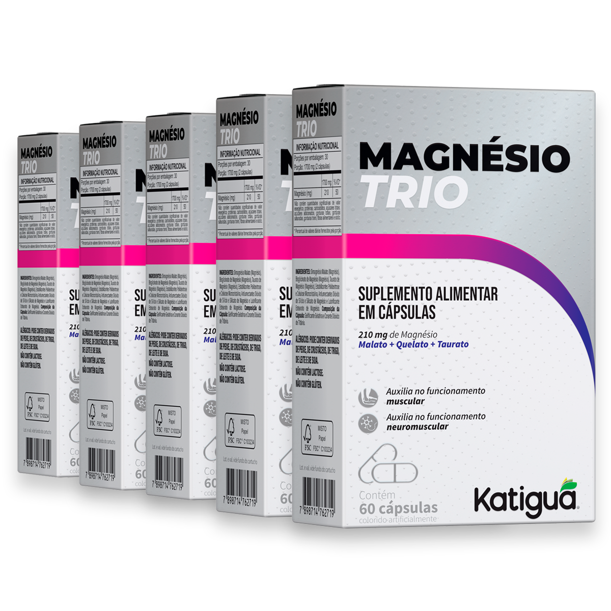 Kit 5 Magnésio Trio Dose Máxima Katiguá 210mg 60 Cápsulas