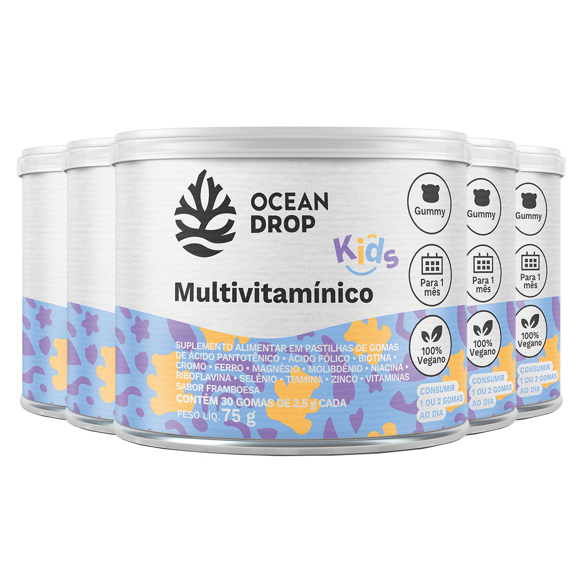 Kit 5 Multivitamínico Kids Ocean Drop Vegano 30 Gomas