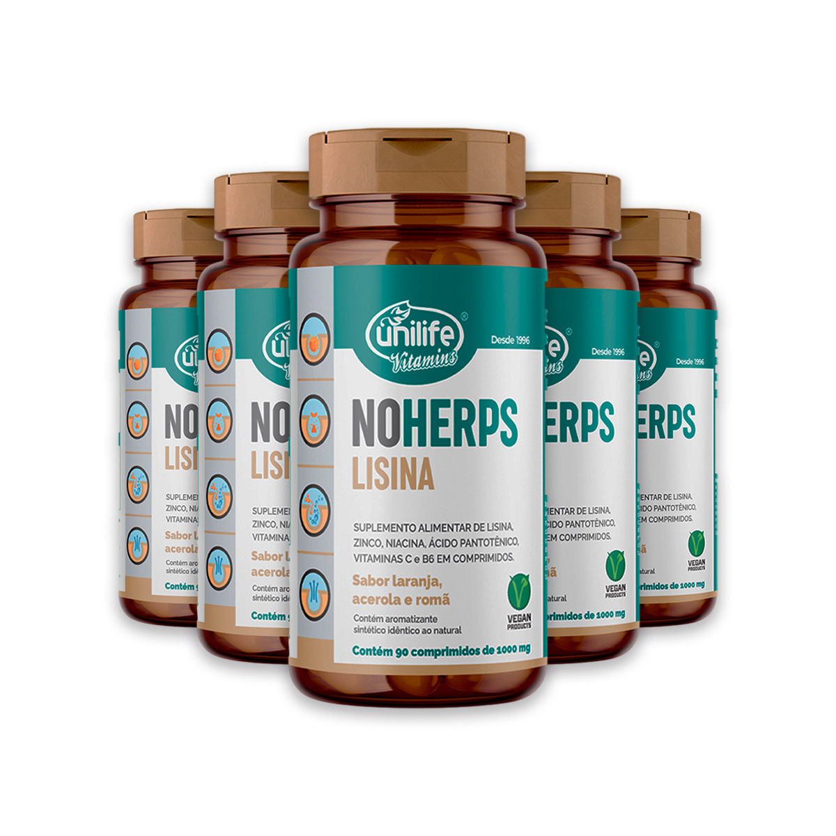 Kit 5 NoHerps Lisina Unilife 90 Comprimidos Laranja e Acerola