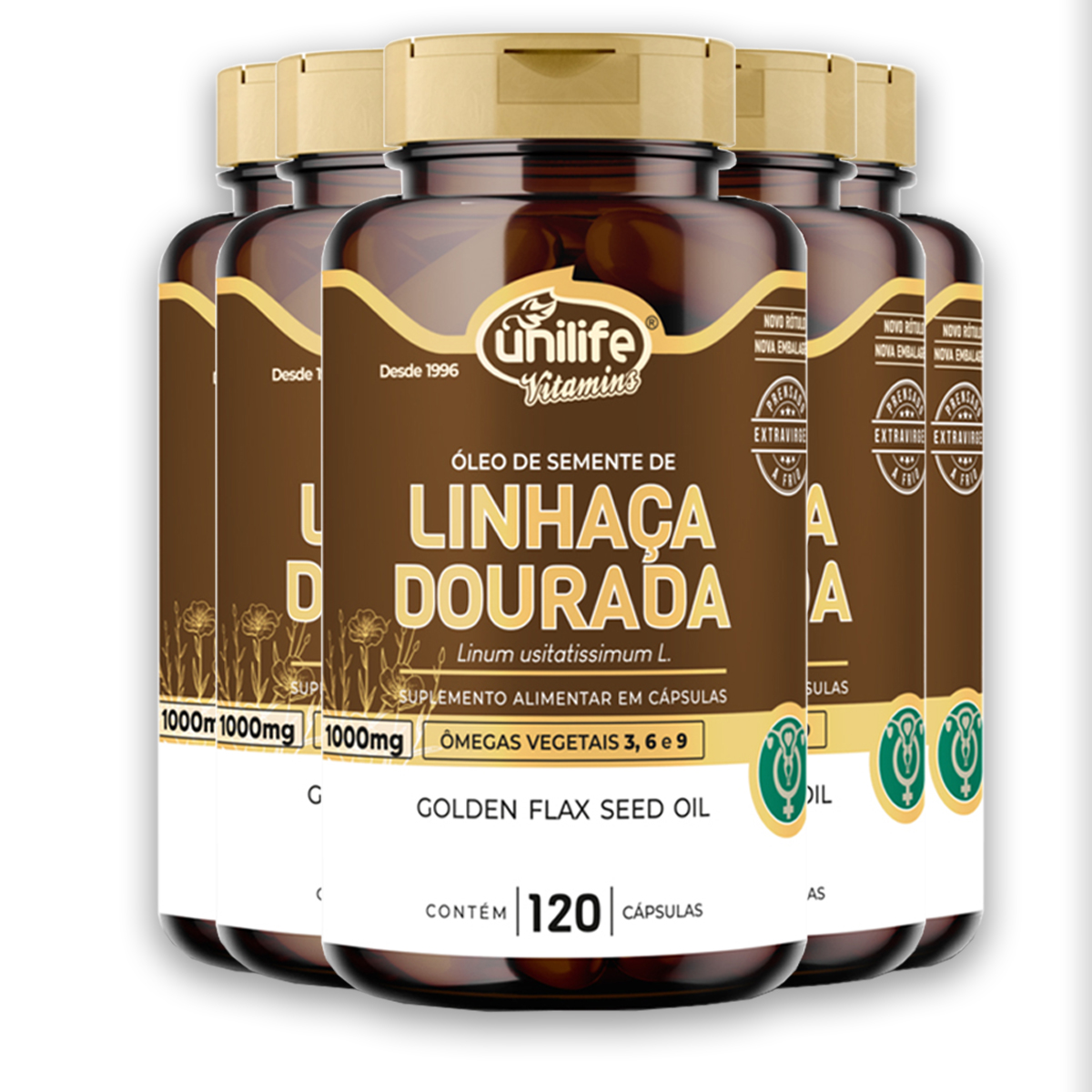 Kit 5 Óleo de Semente de Linhaça Dourada Unilife 120 Cápsulas + Porta Cápsulas