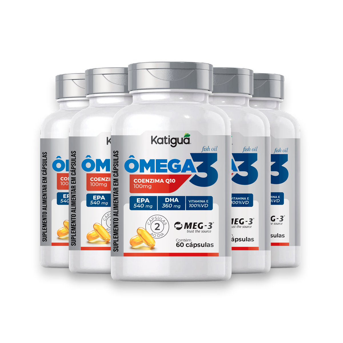 Kit 5 Ômega 3 MEG-3 Concentrado Q10 Katiguá 540/360mg 60 Cápsulas