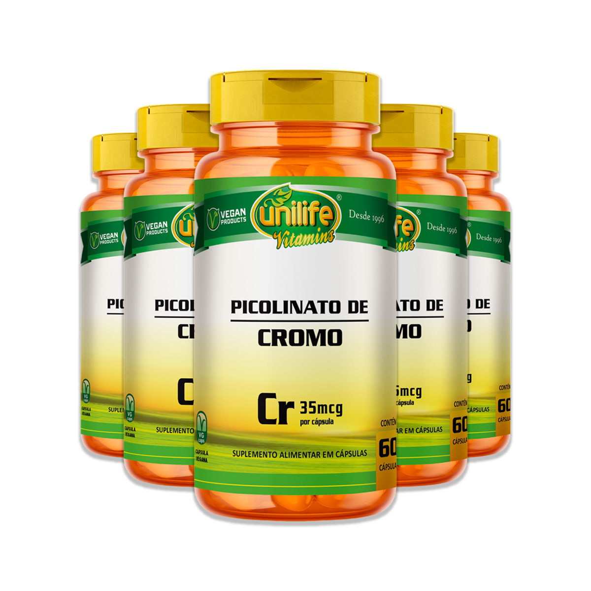KIT 5 PICOLINATO DE CROMO 60 CÁPSULAS UNILIFE