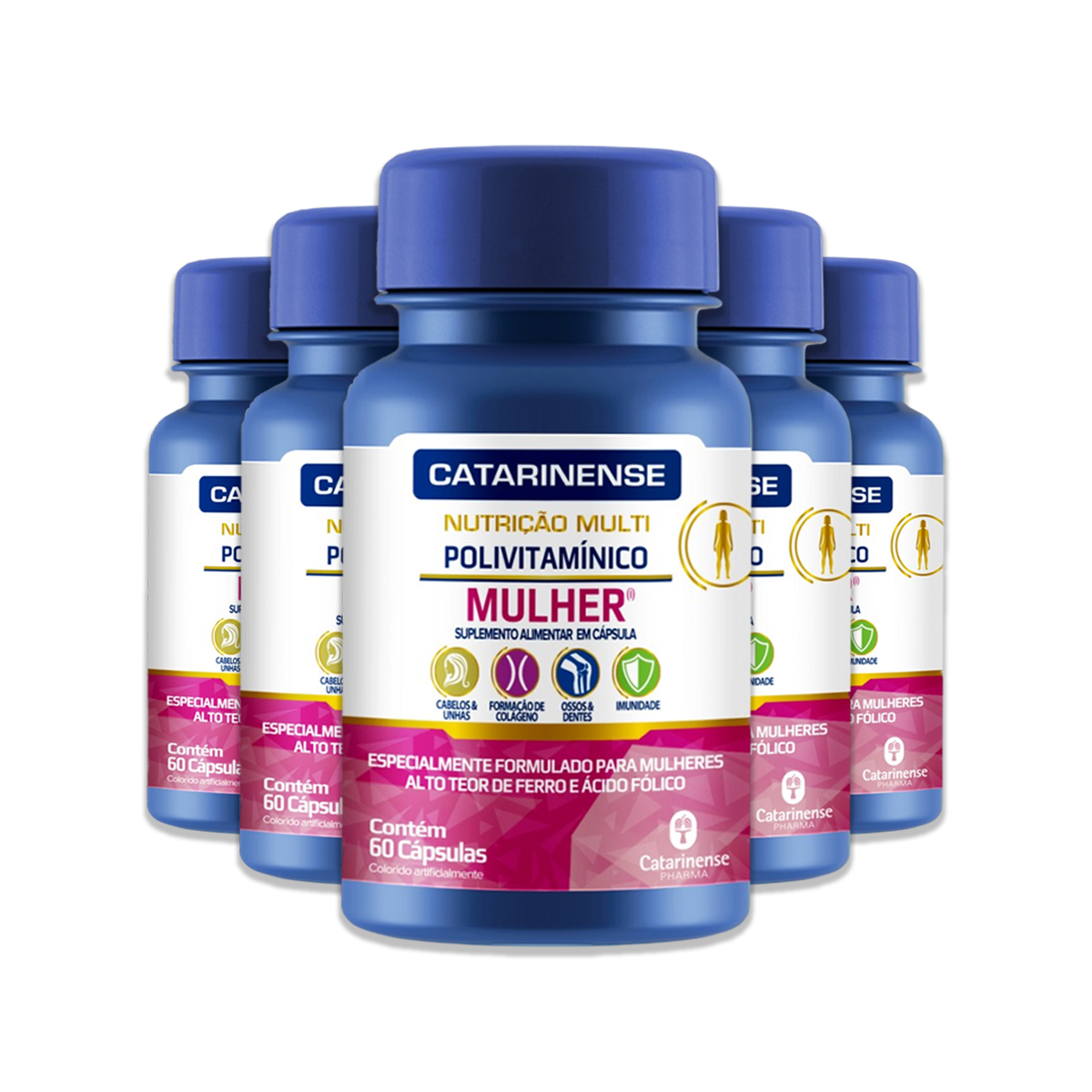 KIT 5 POLIVITAMÍNICO MULHER CATARINENSE 60 CÁPSULAS