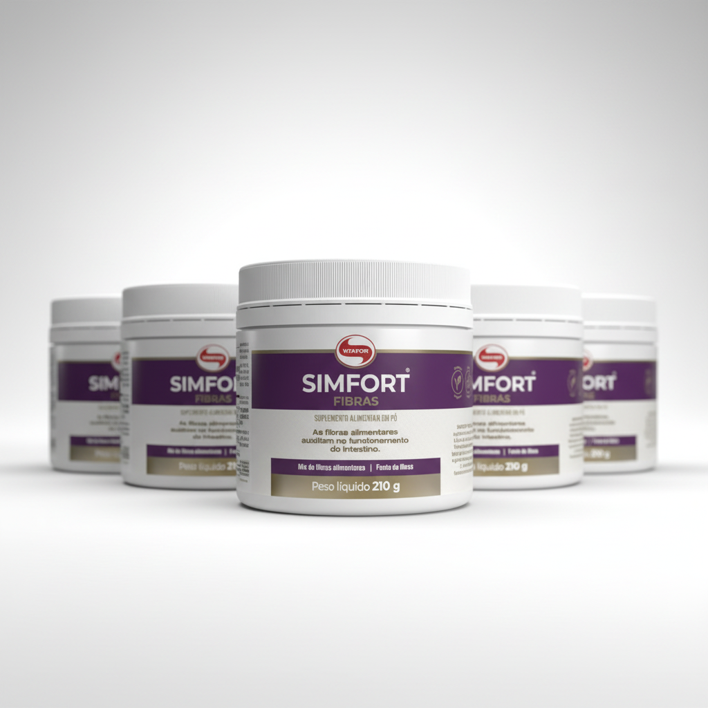 O Simfort Fibras Vitafor é um suplemento alimentar em pó composto por diferentes tipos de fibras. Apresenta fácil dissolução e pode ser incorporado em diversas preparações, conforme orientação de uso.