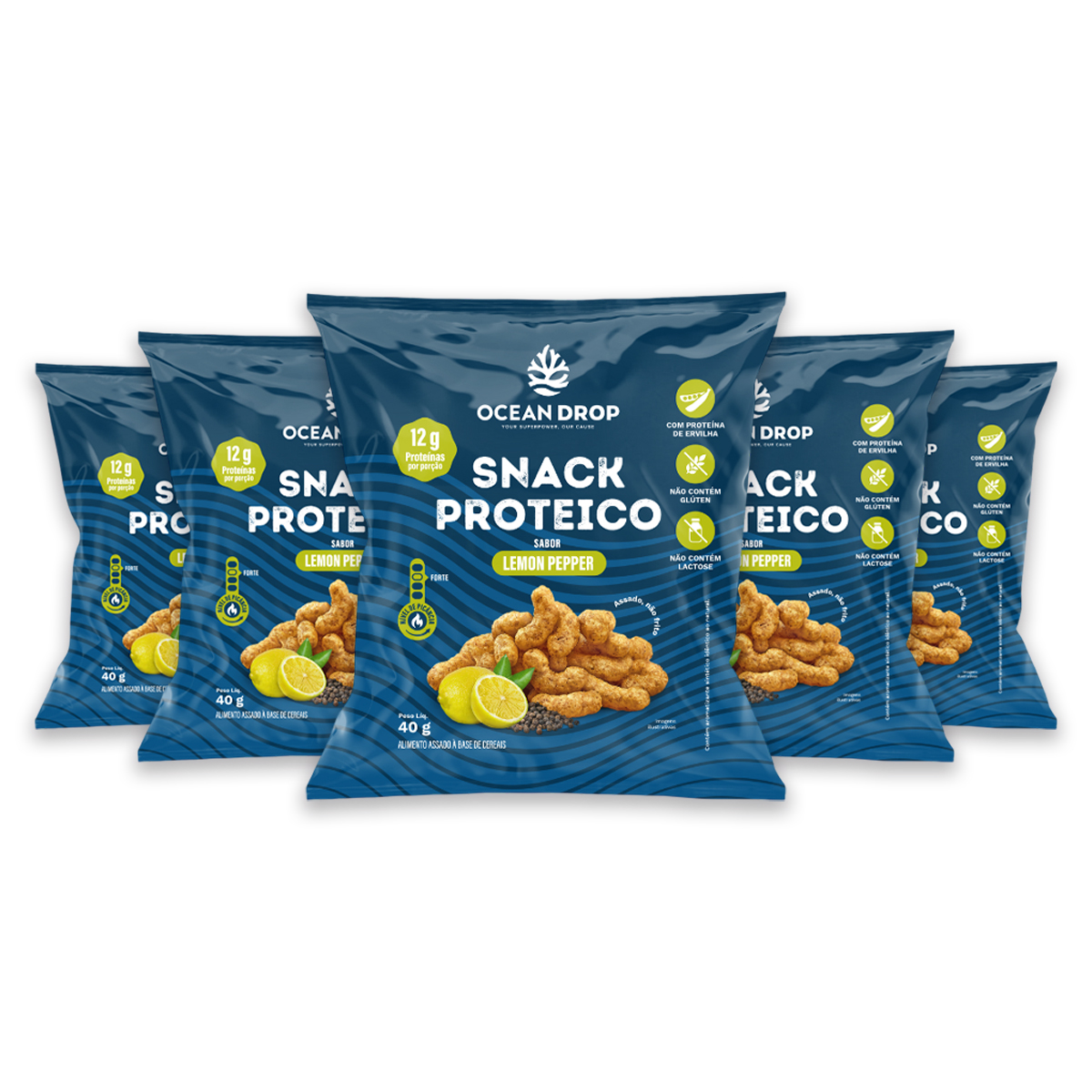 Kit 5 Snack Proteico Ocean Drop 40g Sabor Lemon Pepper