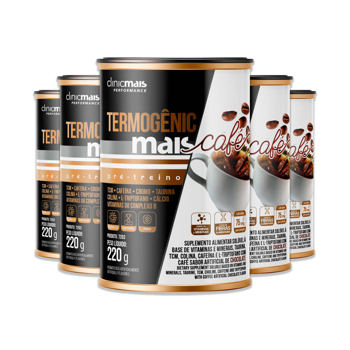 Kit 5 Termogênic Pré Treino Café ClinicMais 220g