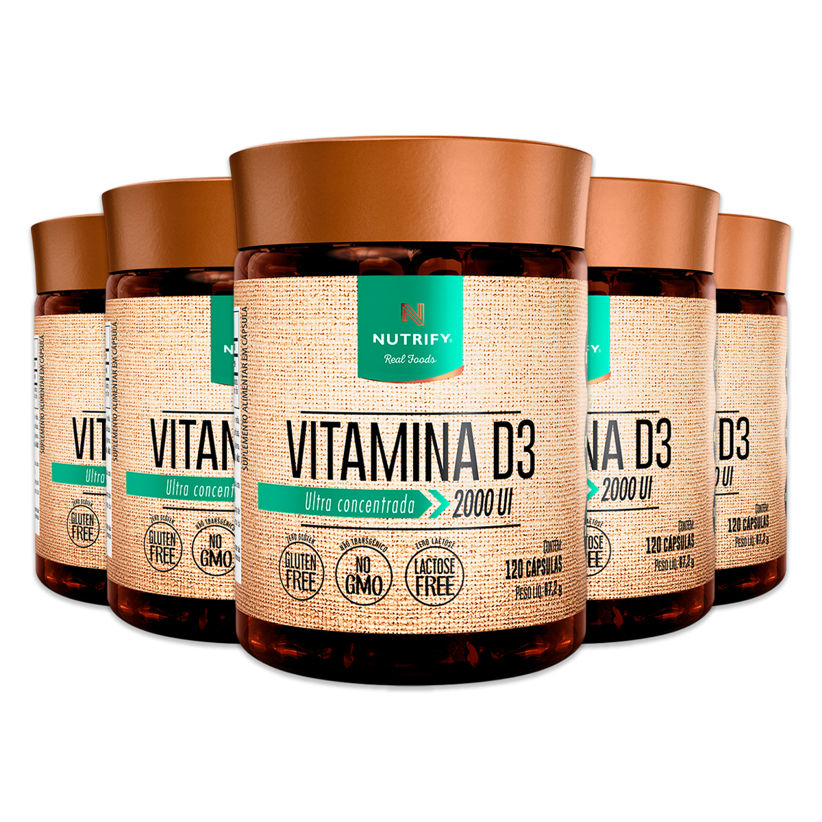 Kit 5 Vitamina D3 2000 UI Nutrify 120 cápsulas + Porta Cápsulas