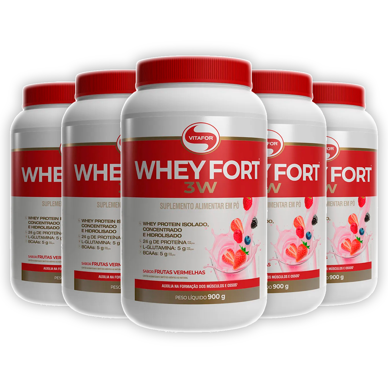 WHEY FORT 3W VITAFOR FRUTAS VERMELHAS 900G + PORTA CÁPSULAS | KIT 5