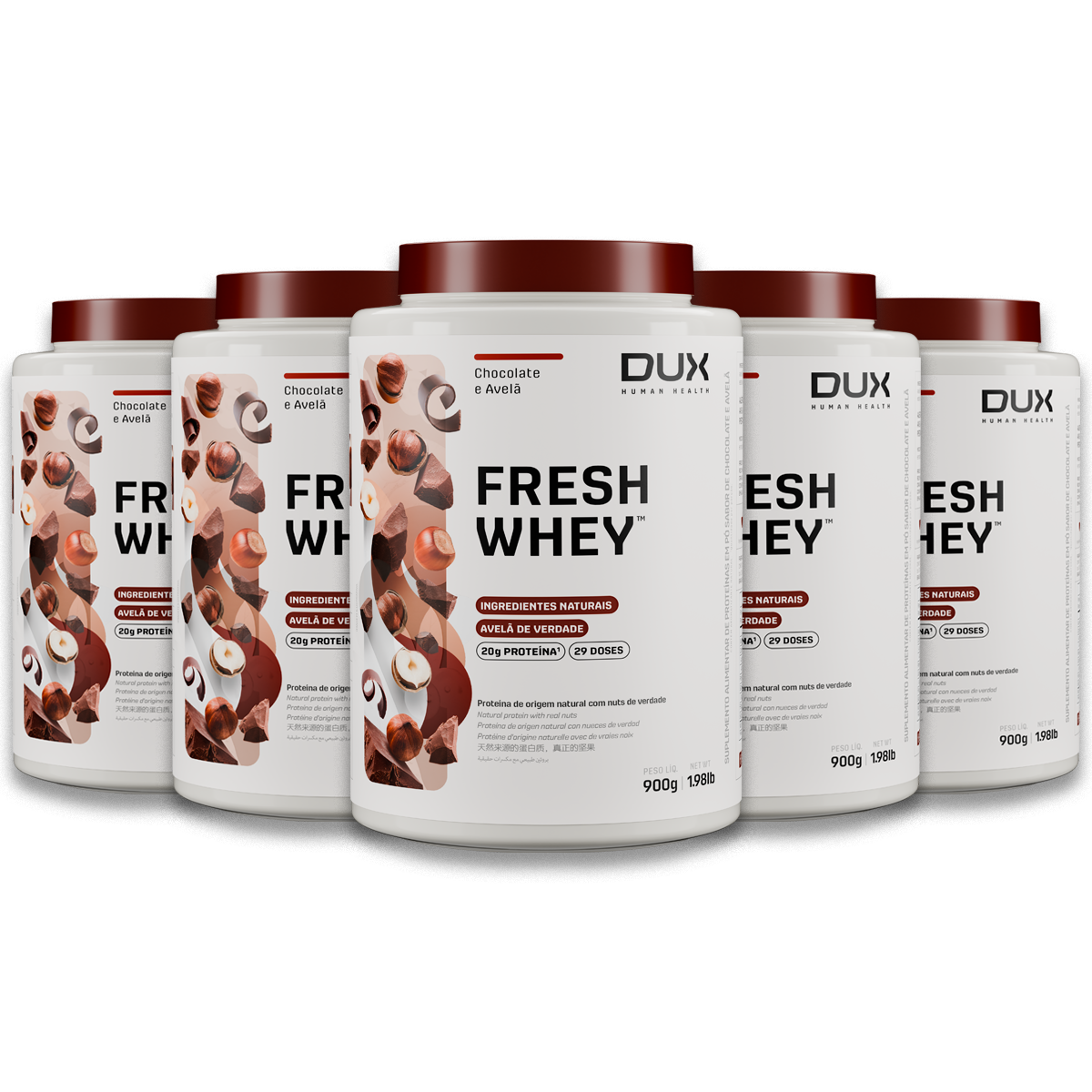Kit 5 Whey Protein Fresh Dux Chocolate Belga e Avelã 900g