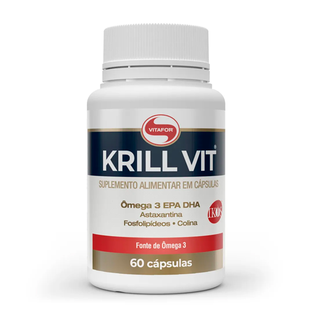 O Krill Vit Vitafor é um suplemento alimentar em cápsulas formulado com óleo de krill (Euphasia superba). Apresenta formato prático para consumo diário, conforme orientação de uso, e cápsulas softgel que facilitam a ingestão.