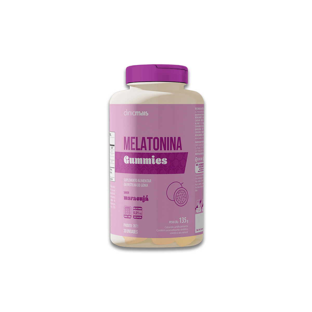 A MELATONINA GUMMIES CLINICMAIS é um SUPLEMENTO ALIMENTAR prático e saboroso, desenvolvido em formato de pastilha de goma com o delicioso sabor de maracujá. Ideal para inclusão na rotina diária de ADULTOS, oferece uma dose de $0,21$ mg de MELATONINA por goma. Uma forma agradável de consumo, com baixo teor calórico e sem adição de açúcares.