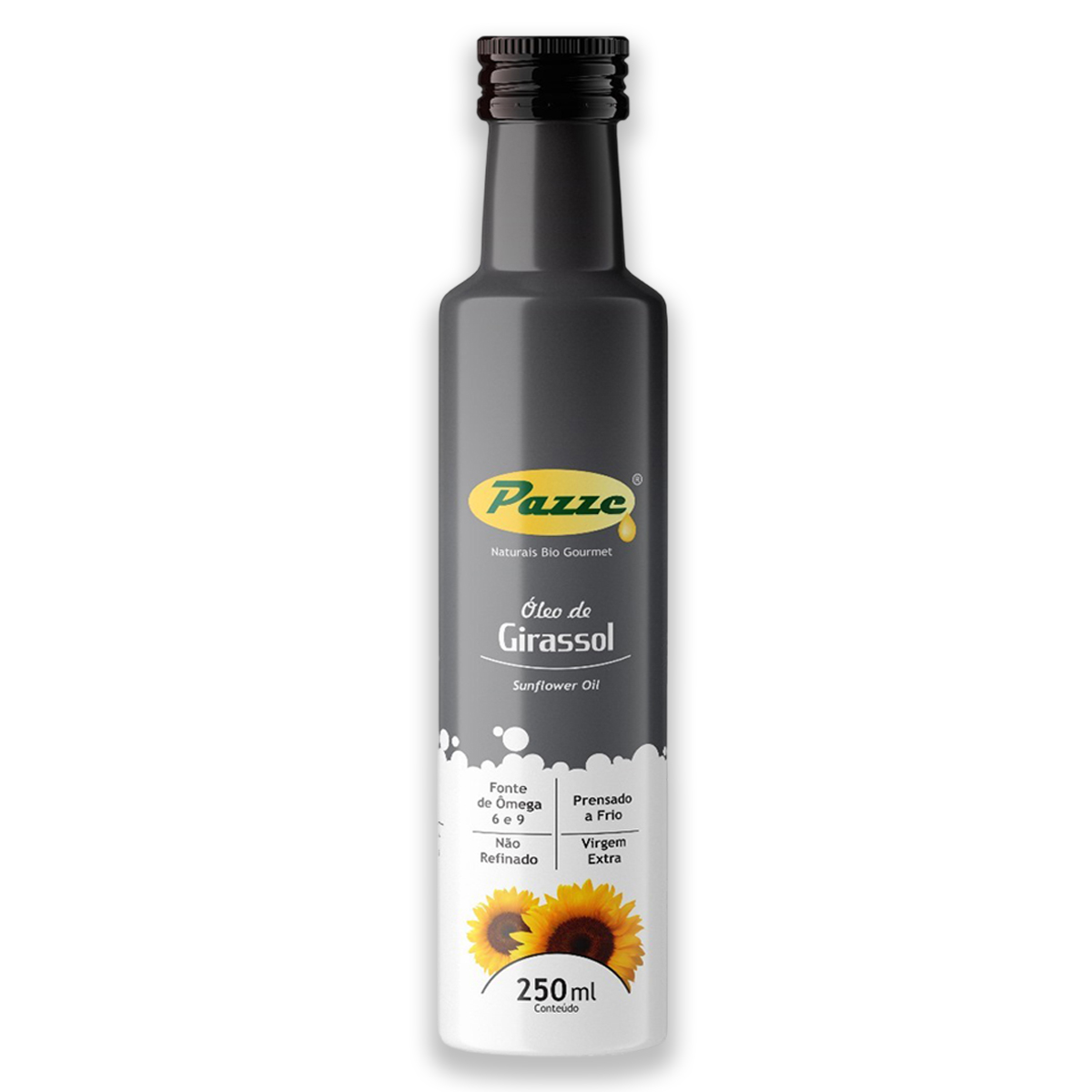 Óleo vegetal de girassol obtido por prensagem a frio, engarrafado e lacrado, próprio para uso culinário. Possui sabor leve e neutro, podendo ser utilizado em preparações frias.