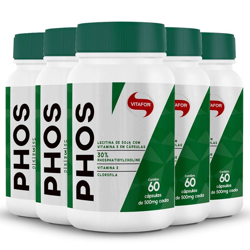 Kit 5 Lecitina de Soja Phos Fosfatidilcolina Vitafor 60 cápsulas